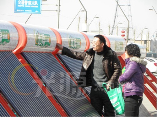 陽光明媚下的晉中是那么引人注目,60多臺光源太陽能在逸園大酒店廣場展現光源氣勢,引來了四面八方的新老客戶,現場新老朋友對光源產品質量表示了肯定,青花瓷的水箱,紫金波紋集熱真空管,讓新老朋友贊不絕口。
