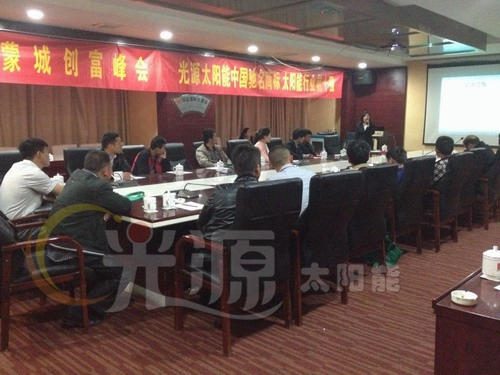 4月21日,光源太陽(yáng)能安徽蒙城2014年經(jīng)銷商培訓(xùn)大會(huì)在蒙城國(guó)際大酒店舉行,來(lái)自蒙城的20余位的經(jīng)銷商參加了本次會(huì)議。