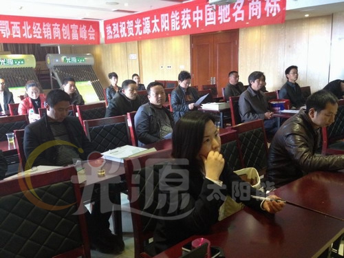 隨著市場上客戶對太陽能產品使用功能的需求不斷加大,光源公司順應市場發(fā)展變化,系列產品也在不斷地更新?lián)Q代,以滿足廣大消費者的需求。趙艷女士圍繞“順應時勢,調整戰(zhàn)略”在太陽能單機銷售、太陽能系統(tǒng)工程方面為經銷商朋友剖析熱利用行業(yè)前景。經銷商代表們就趙艷女士提到的問題進行了深入的探討,相互交流了自己在操作中遇到的問題、解決方案及獲得的經驗。