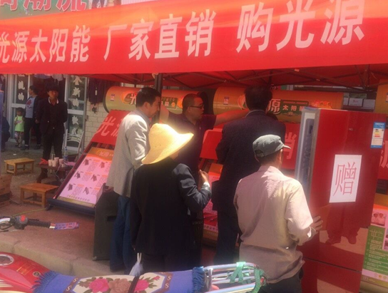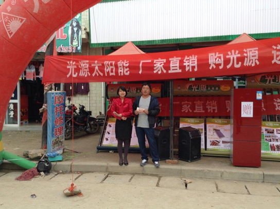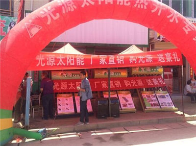河北光源太陽能促銷活動還在火熱進行中。光源太陽能甘肅隴南西和縣姜席鎮凈水熱水促銷活動自2015年5月14日開始宣傳,現已銷售光源太陽能14臺。