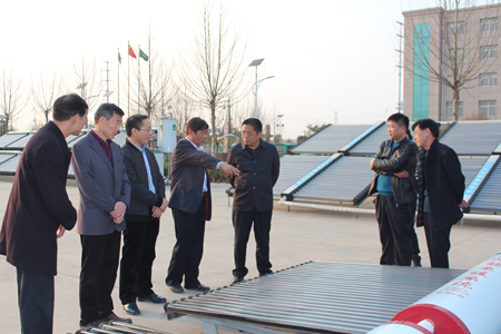 聽取“太陽能采暖系統”性能講解 周寶戰(左三)