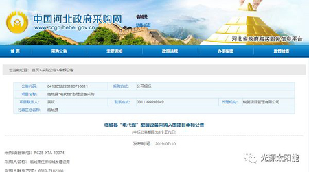 7月10日,河北臨城縣“電代煤”取暖設備采購入圍項目中標公告出爐,河北光源太陽能科技有限公司憑借強大的品牌實力、過硬的產品質量以及親民的售后服務榮登榜單。入圍產品為:八標段:蓄熱式電暖氣(液態)。