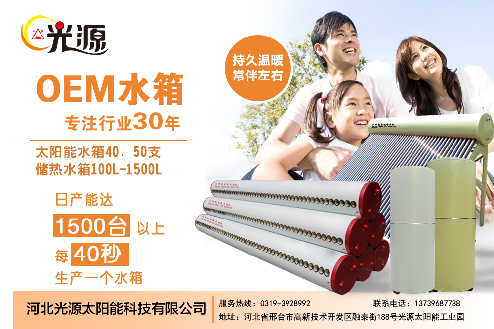 作為實現太陽能中高溫熱利用產業化的企業,公司擁有儲水箱生產線。企業還與天津大學等科研院所合作研發的“太陽能采暖系統”和“蓄熱式電鍋爐”及“熱風式蓄熱電暖器”,具有技術先進、安全可靠、快速升溫、性價比高、使用方便等諸多優勢。可廣泛用于農村住宅、中小學校、辦公場所等建筑領域,成為“煤改氣”“煤改電”的首選產品,對大氣污染治理有積極的帶動作用。